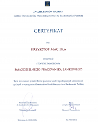 Posiadam ponad 10 lat doświadczenia w bankowości oraz obsłudze Klienta indywidualnego oraz biznesowego. Długoletnia praca w działach obsługi Klienta pomogła mi zrozumieć potrzeby a pracując od ponad 10 lat w bankowości na różnych stanowiskach miałem możliwość zapoznania się dokładnie z wieloma systemami bankowymi, co pomogło mi pozyskać wiedzę umożliwiającą zajęcie się profesjonalnym wsparciem kredytowym. Swoich klientów zawsze traktuję priorytetowo i wkładam wszystkie swoje siły w to, aby uzyskać dla nich jak najlepszą ofertę.